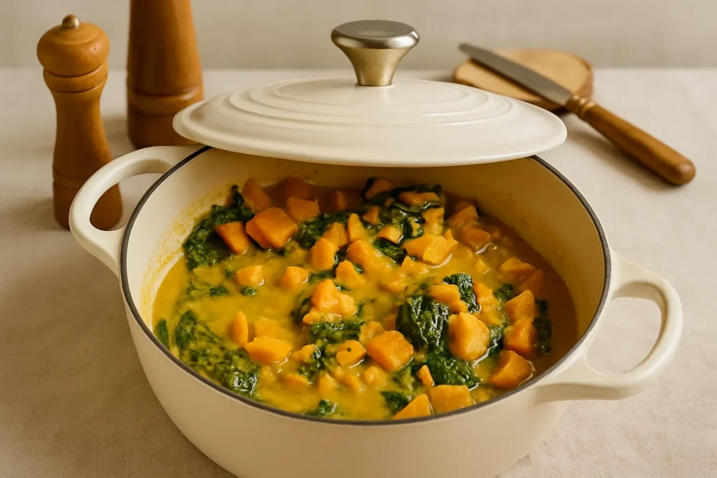 This butternut squash coconut curry is the kind of comforting dinner that instantly makes the kitchen feel warmer and more inviting. Tender cubes of squash simmer in a silky coconut sauce, while spinach adds freshness and color to every spoonful. Gentle spices bring depth and fragrance without overpowering the natural sweetness of the vegetables, creating a cozy vegetarian curry that is simple enough for a weeknight and satisfying enough to serve any time you need a nourishing meal.