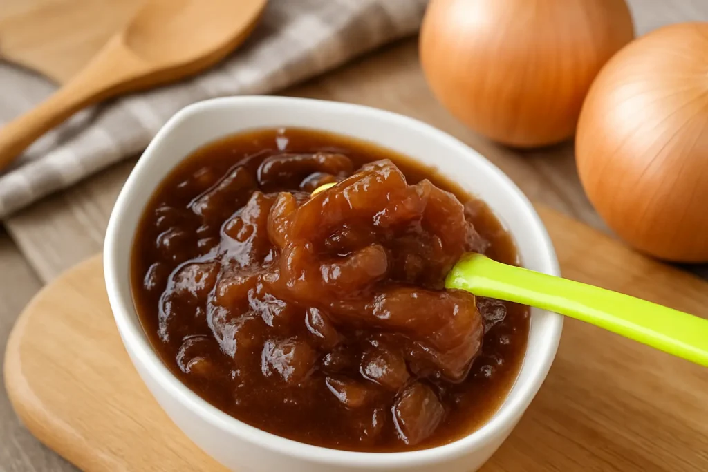 This homemade honey onion confit is one of those simple-looking recipes that depends entirely on balance. When it is cooked with patience, the onions turn silky and tender, the honey adds gentle sweetness, and the balsamic vinegar brings just enough brightness to keep every spoonful lively. The result is a rich onion relish that feels refined without being fussy.